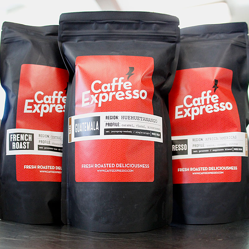 Our proprietary roasts are fresh roasted daily at Meridian Coffee Company. Carefully selected beans from across the globe, only the best beans make it into Meridian’s roaster and into Caffé Expresso’s varietals and blends. We always stock beans, in case you need to stock up your home supply. Choose from our House Light Roast, Guatemalan Medium Roast, French Dark Roast or Decaf in beans or ask and we can grind it to your spec.